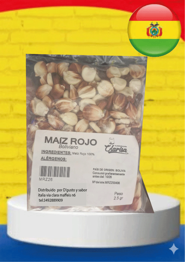 Il Maíz Rojo è una varietà di mais molto apprezzata nella cucina latinoamericana e andina per il suo colore intenso, il gusto caratteristico e la sua versatilità in cucina. Utilizzato da generazioni nelle ricette tradizionali, è un ingrediente fondamentale per preparazioni autentiche e nutrienti.